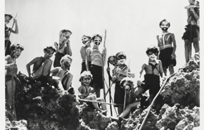 Le début du film est très énigmatique : des enfants en tenue de collégiens anglais se retrouvent sur une plage et dans la jungle qui la borde, sans réellement plus d’explications. Les informations permettant de comprendre la situation ont en fait été données au travers d’un générique capital… mais pas forcément facile à interpréter pour celui qui ne connaît pas encore l’histoire. Ce générique ne sert pas qu’à égrainer les noms de ceux ayant participé à la réalisation du film. Il sert aussi à montrer des images d’archives qui illustrent le background des personnages et de leur situation : photos de garçons dans des collèges anglais, images de la Seconde Guerre mondiale, plans de missiles puis d’avion qui s’écrase. Cette technique d’évocation témoigne du goût de Peter Brook pour suggérer plutôt qu’illustrer – un art du dénuement très souvent à l’œuvre dans ses mises en scène pour le théâtre.