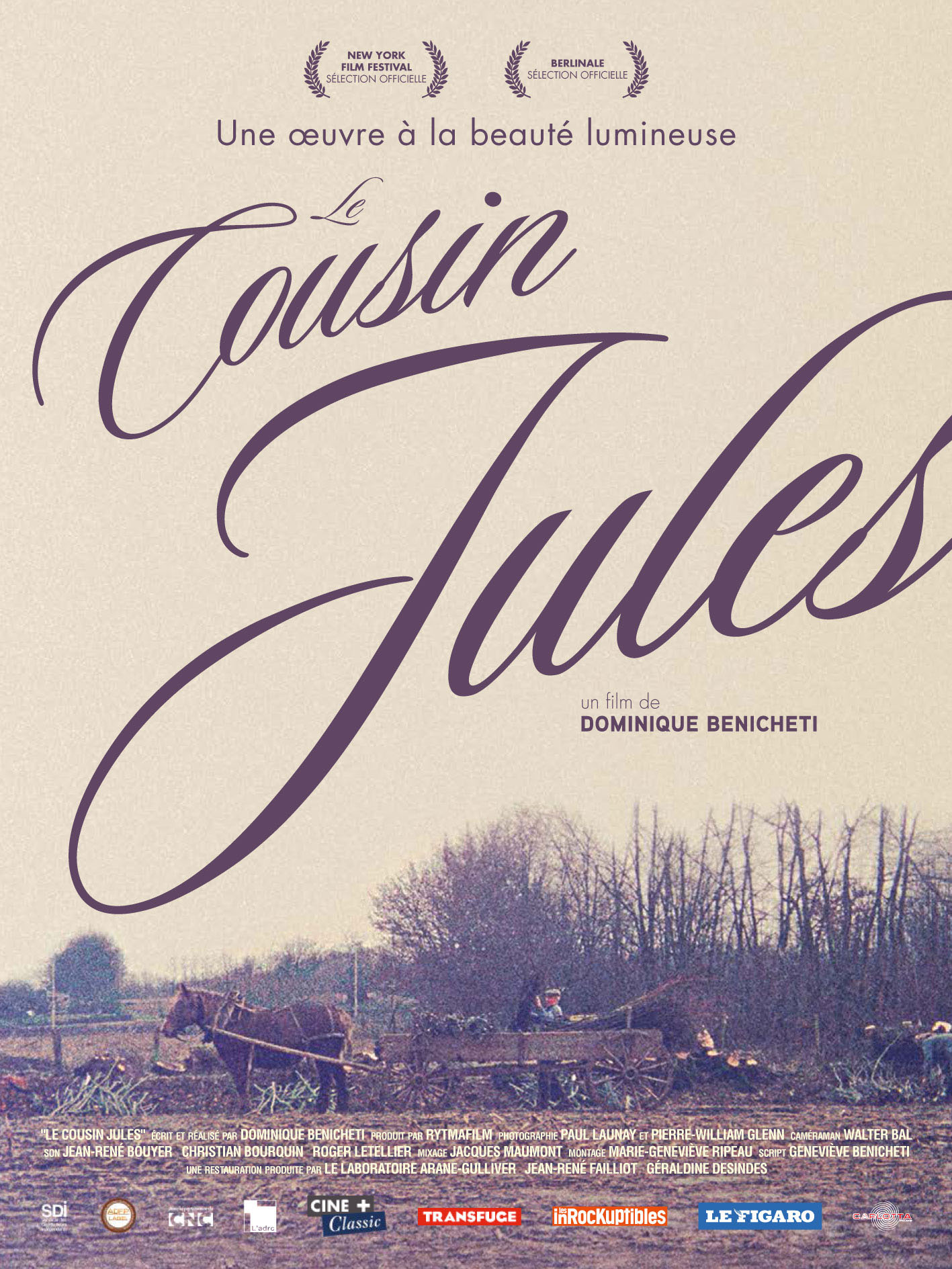 Le Cousin Jules est un film de 1973 réalisé par Dominique Benicheti, tourné en Cinémascope et enregistré en stéréo, véritable prouesse technique pour l’époque. Le cinéaste capte avec précision la grandeur du quotidien d’un couple de fermiers français, qui n'est pas sans rappeler le Depardon de la trilogie Profils paysans. Le Cousin Jules est une ode à la beauté de la France rurale, enfin visible dans sa somptueuse version restaurée 2K !