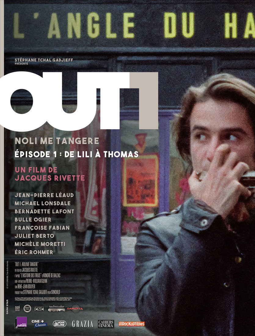 Fondé sur un concept unique, notamment l’absence de scénario et des clins d’œil à Honoré de Balzac et Lewis Carroll, Out 1 est demeuré presque invisible pendant plus de quarante ans. Out 1 : noli me tangere, la version intégrale, en huit épisodes, et Out 1 : Spectre, la version courte, sont enfin disponibles en versions restaurées 2K supervisées par le chef-opérateur Pierre-William Glenn (La Nuit américaine). Les personnages hauts en couleurs que Léaud rencontre au cours de sa quête sont interprétés par Juliet Berto, Michael Lonsdale, Bernadette Lafont, Bulle Ogier, Françoise Fabian, Jean-François Stévenin et autres icônes de la Nouvelle Vague, avec des apparitions d’Éric Rohmer et Barbet Schroeder.