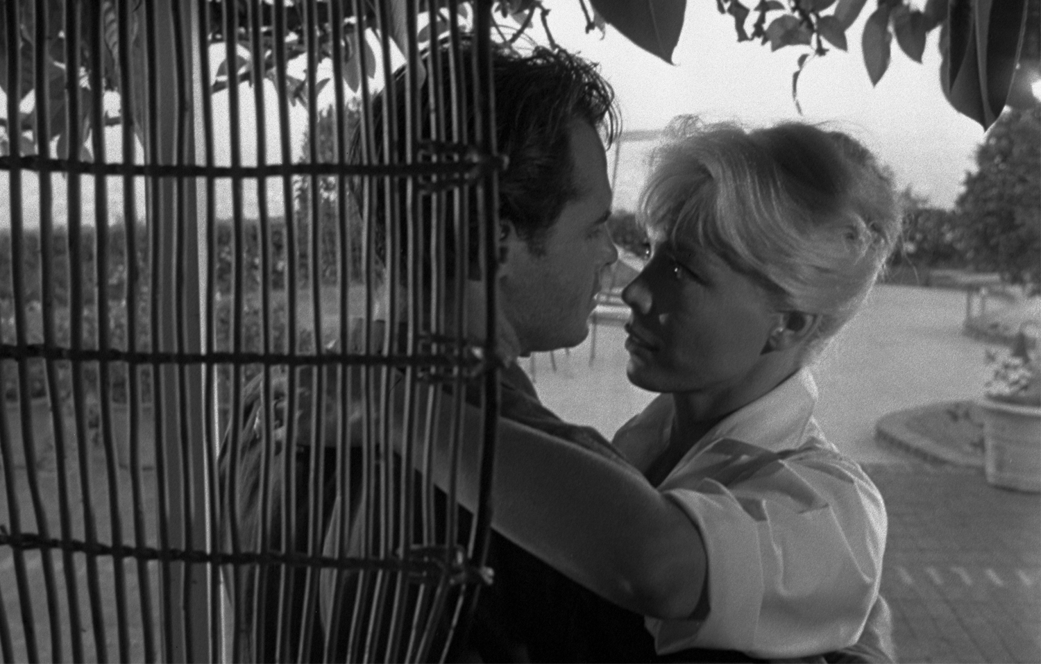 Propriété privée est le premier film du réalisateur américain Leslie Stevens, protégé d’Orson Welles – ils travaillèrent ensemble au Mercury Theatre, la compagnie de théâtre créée par le cinéaste de Citizen Kane – et futur créateur de la série de science-fiction Au-delà du réel (1963-1965). Propriété privée a été tourné en dix jours seulement dans la villa de Stevens, sur les hauteurs de Beverly Hills. C’est en voyant la maison d’à côté, inoccupée, que lui vient cette image de deux hommes en train d’espionner leur voisine. Il engage alors sa femme, l’actrice Kate Manx, pour jouer le rôle de la séduisante desperate housewife qui tombe rapidement sous le charme du manipulateur Duke. Tourné dans un magnifique noir et blanc signé Ted McCord, célèbre directeur de la photographie à qui l’on doit Le Trésor de la Sierra Madre de John Huston (1948) et À l’est d’Éden d’Elia Kazan (1955), Propriété privée est un inquiétant thriller néo-hitchcockien doublé d’une critique féroce de la superficialité de l’American Dream à l’ère Playboy. Warren Oates livre sa première grande interprétation dans le rôle de Boots, l’un des deux malfrats, quelques années avant sa consécration comme acteur phare du nouveau cinéma américain (chez Sam Peckinpah et Monte Hellman notamment). Aux côtés de l’acteur Corey Allen – célèbre pour son rôle de rival de James Dean dans La Fureur de vivre de Nicholas Ray (1955) –, il forme un duo atypique. Leur relation évoque celle des personnages de John Steinbeck, Lennie et George, dans Des souris et des hommes (1937) : une amitié indéfectible chez deux hommes que tout semble opposer (tant sur le plan physique qu’intellectuel), à laquelle le film ajoute un sous-texte homosexuel à peine dissimulé. Lors de sa sortie en 1960, Propriété privée jouit d’un parfum de scandale avec ses références sexuelles explicites et son voyeurisme revendiqué. La redécouverte de ce film noir majeur, invisible depuis sa sortie, et disponible dans son élégante restauration 4K, est un événement à ne pas manquer !