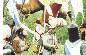 En ces temps moyenâgeux où les vaches volent entre Français (grossiers, les Français) et Anglais et où la science n’a pas encore livré tous ses secrets (comment les hirondelles transportent-elles les noix de coco ? les sorcières sont-elles en bois puisqu’elles flottent ?), le Roi Arthur, sur demande expresse du Tout Puissant, sillonne le pays, à la recherche du Saint Graal. Accompagné des preux et courageux chevaliers de la table ronde (et de Sir Robin, décidément-pas-aussi-courageux-même-pas-un-peu), la petite troupe va devoir passer mille épreuves : Chevalier noir, qui font “Ni !” ou à trois têtes, jouvencelles en chaleur, monstre et même le terrible lapin tueur !