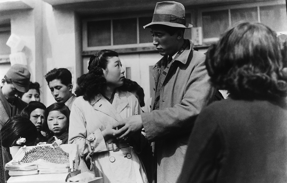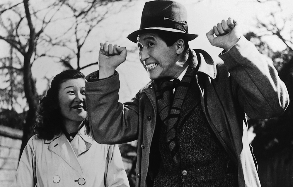 Pour son sixième long-métrage, Akira Kurosawa signe une oeuvre bouleversante sur la lente et difficile reconstruction de Tokyo au sortir de la guerre – la moitié de la vieille ville fut détruite par les bombardements américains en 1945. Le scénario d’Un merveilleux dimanche, coécrit par le réalisateur et son ami dramaturge Keinosuke Uekusa, est adapté du film de D.W. Griffith, Isn’t Life Wonderful, qui racontait déjà l’extrême précarité en Allemagne après la Première Guerre mondiale. Allégorie de la capitale japonaise, le couple formé par Yuzo et Masako doit quotidiennement affronter les obstacles pour survivre : marché noir, difficultés à se loger, manque d’argent… Optant une nouvelle fois pour un style proche du documentaire, Kurosawa scrute le quotidien du Tokyo d’après-guerre, entre débrouille et désarroi. Un merveilleux dimanche évoque alors le courant du néoréalisme italien, né peu de temps avant en Europe, et sa peinture objective de la réalité – Allemagne année zéro de Roberto Rossellini, autre chronique sur une ville traumatisée par le conflit, est tourné la même année. Une autre influence serait également à noter du côté de Frank Capra, maître de la comédie sociale à l’américaine. Car Un merveilleux dimanche est une oeuvre qui balance constamment entre la réalité et le rêve, ce dernier vu comme le principal moteur de la vie. C’est en acceptant sa part d’imagination et de rêve que chacun peut continuer, comme le personnage de Yuzo qui retrouve sa joie de vivre lors de la scène clé du film, où celui-ci se transforme en chef d’orchestre dans un amphithéâtre vide. Kurosawa signe finalement une ode à l’optimisme et prouve ici sa foi en l’humanité.