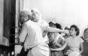 Dix ans après les catastrophes de Hiroshima et Nagasaki, le cinéaste Akira Kurosawa s’attaque aux traumatismes causés par la bombe atomique. Une peur loin d’être irrationnelle puisque les Américains ont poursuivi jusqu’à la fin des années 1950 des expérimentations nucléaires dans l’atoll de Bikini, situé dans l’océan Pacifique. Dans Vivre dans la peur, Kurosawa dresse le portrait d’un vieil homme littéralement rongé par la menace d’une nouvelle catastrophe nucléaire, prêt à tout abandonner pour s’installer à l’autre bout du monde. C’est Toshiro Mifune, l’acteur fétiche de Kurosawa, qui prête ses traits au personnage de Nakajima. Bien que seulement âgé de trente-cinq ans, le comédien est impressionnant dans le rôle d’un vieux patriarche septuagénaire renié par les siens. À travers cette figure, Kurosawa dresse également le portrait d’une société japonaise en pleine mutation, encore meurtrie par la guerre. Sa peinture de Tokyo est saisissante de réalisme ; l’omniprésence des bruits de la ville confère une atmosphère réellement oppressante à cet environnement urbain. La menace est partout et pas uniquement dans la tête du père, semble nous dire le réalisateur. Celui-ci pointe également du doigt l’individualisme grandissant dans le Japon d’après-guerre, avec l’exacerbation du conflit entre générations – les enfants vont jusqu’à mettre leur père sous tutelle afin de préserver leur confort matériel. Film saisissant et visionnaire, Vivre dans la peur est un récit bouleversant d’humanisme sur la déchéance d’un homme que personne ne veut croire et qui finira rongé par la folie.